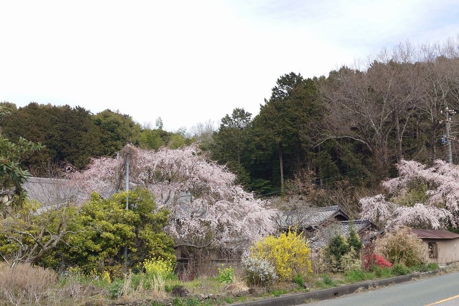 この場所は北が山があって北風がさえぎられていてさらに南からのお日様の日当たり良好の場所で岡崎市でも毎年桜の開花が早いところです。ご覧の通り桜以外の花も咲き誇っています。