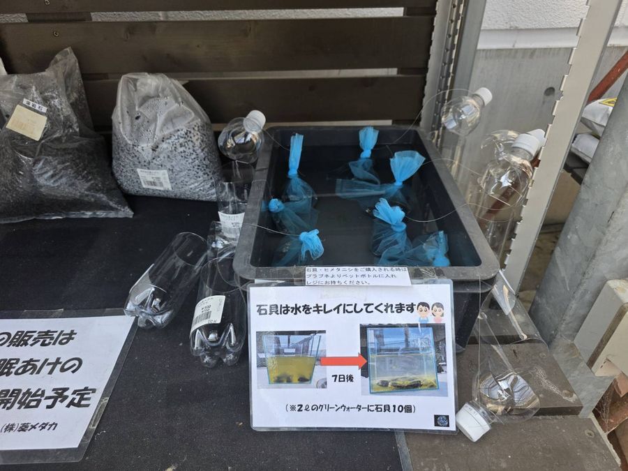 メダカの販売は3月中旬以降を予定していますが琵琶湖産のイシガイなどの販売を開始しました。