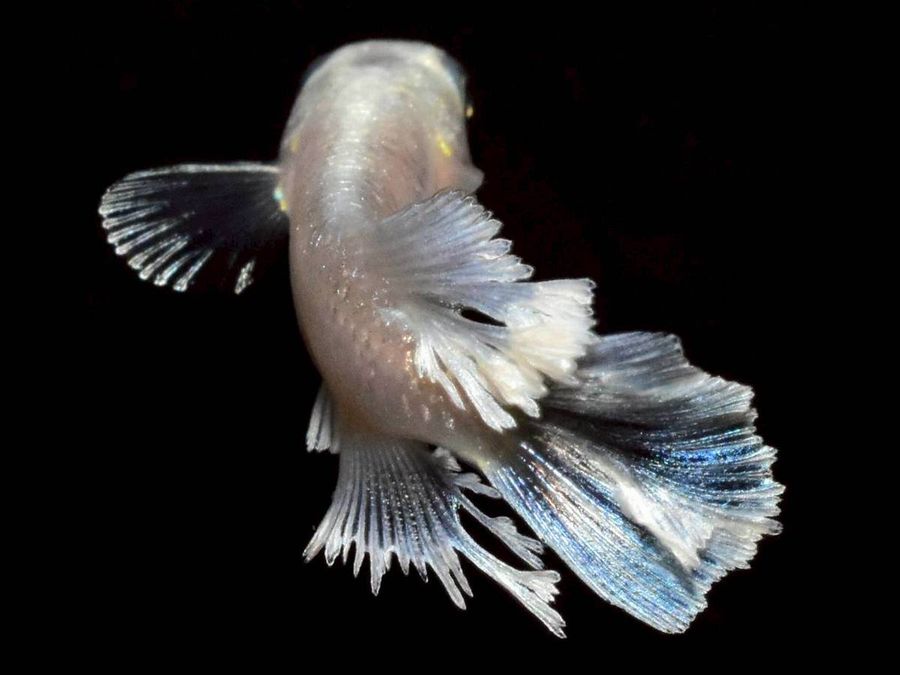 そしてこの個体はペアリングされたオス個体の画像です。尾ヒレの一部から枝分かれが始まっているのがはっきりとわかります。このまま進化したら尾ヒレまでモコモコになる可能性を感じますね。