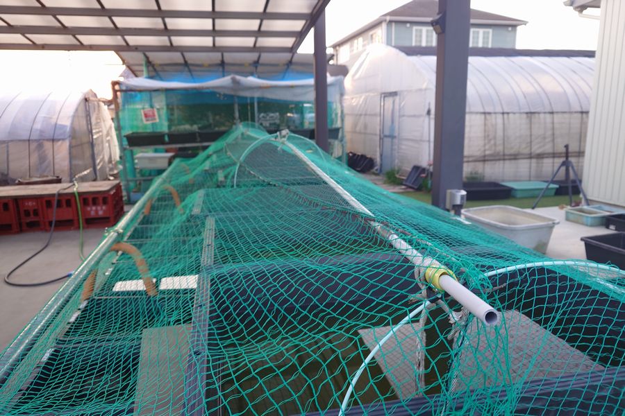上の画像は現在冬眠中の当店の屋外飼育のメダカ達ですが、私が近寄ったときにメダカが餌を求めてよってきた水槽のみ少量の餌をやりました。
